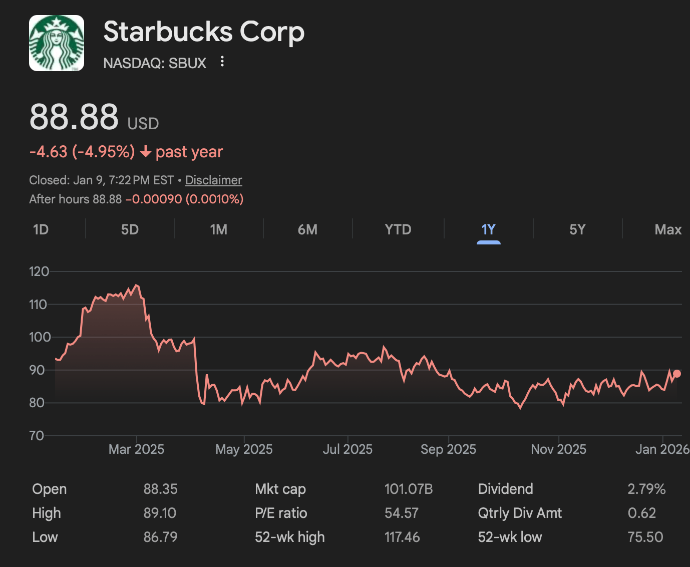 Starbucks NASDAQ today: Jan 11, 2026